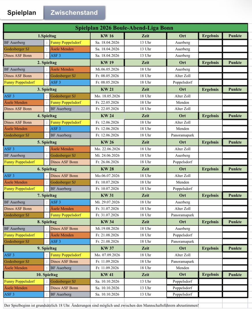8.Statt Hobbyliga firmieren wir unter dem Begriff „BouleAbendLiga Bonn“ „BALi Bonn"